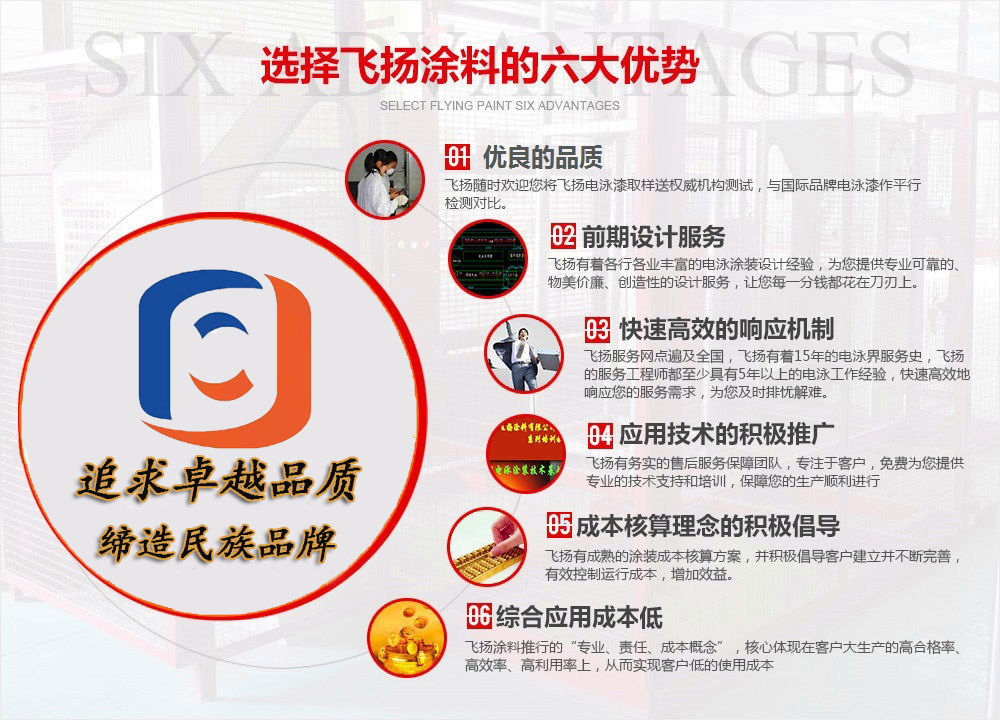 飛揚(yáng)涂料創(chuàng)立于1999年,是專注于陰極環(huán)氧電泳漆研發(fā)、生產(chǎn)、銷售和服務(wù)的電泳漆生產(chǎn)廠家,公司已通過(guò)IATF16949國(guó)際質(zhì)量管理體系認(rèn)證?!疤峁┻m合客戶的產(chǎn)品,助力客戶提高產(chǎn)品品質(zhì)、降低運(yùn)行成本、增加效益”是飛揚(yáng)立足業(yè)界的根本!...